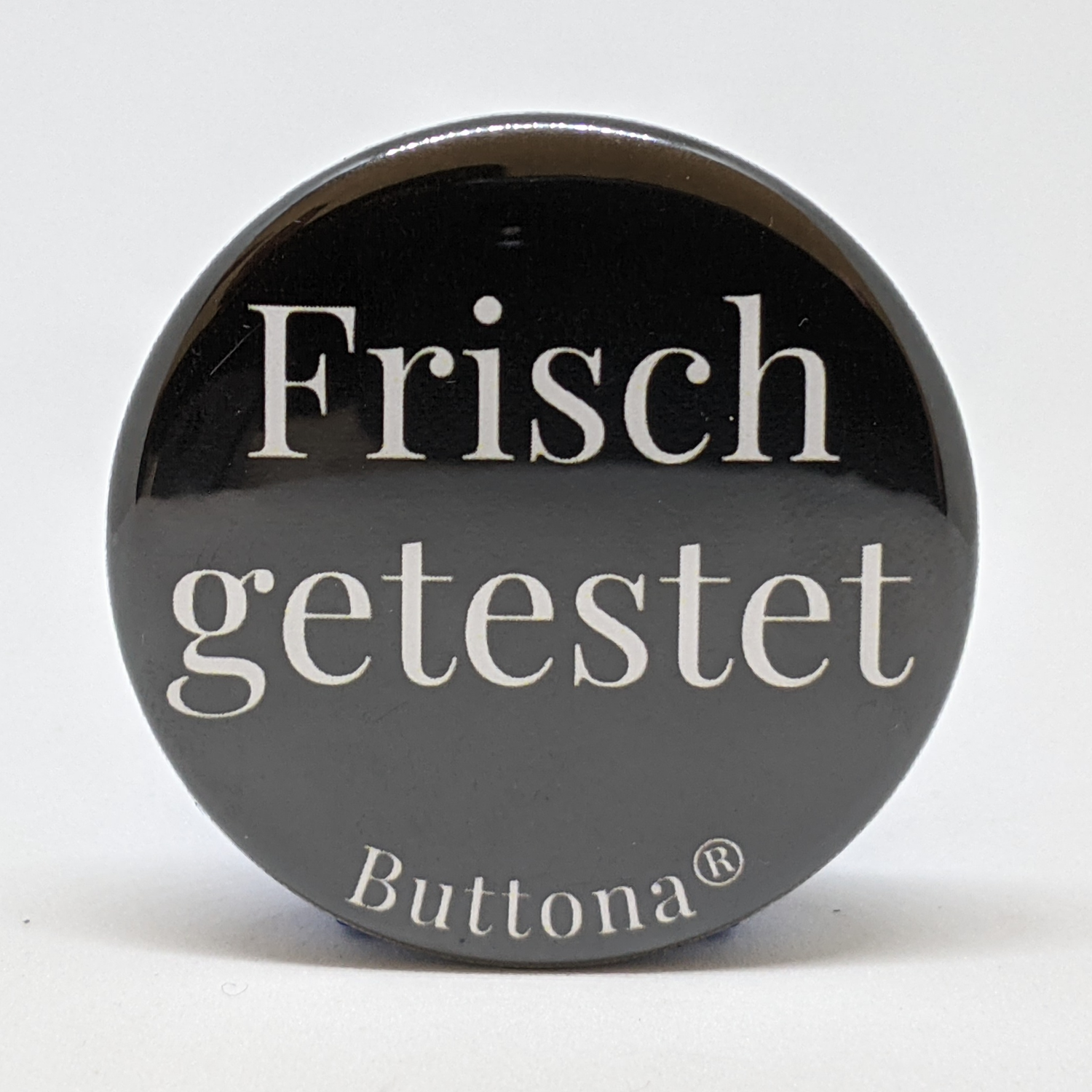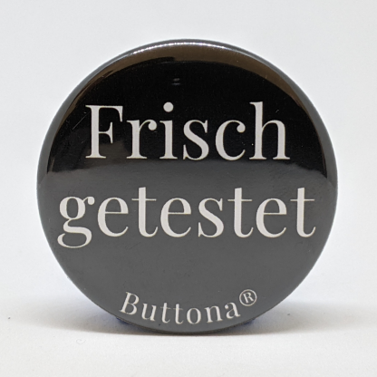36mm Button „Frisch getestet“ (Schwarz)